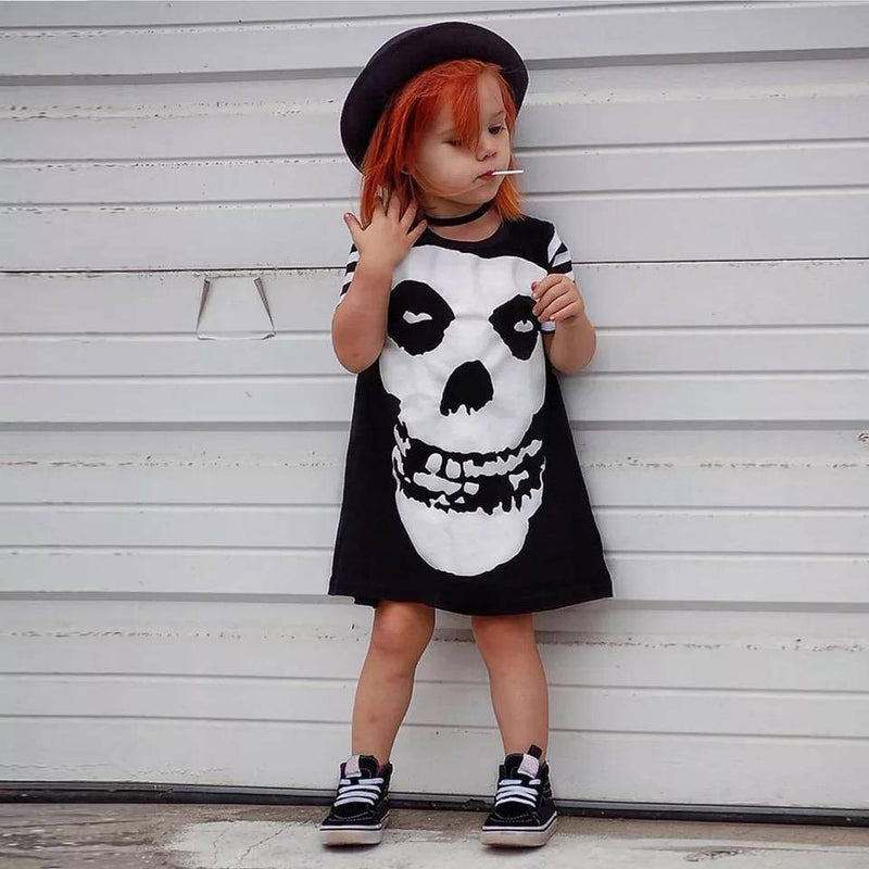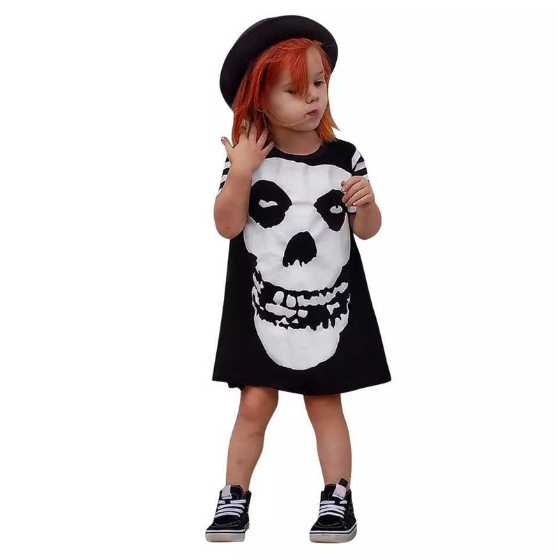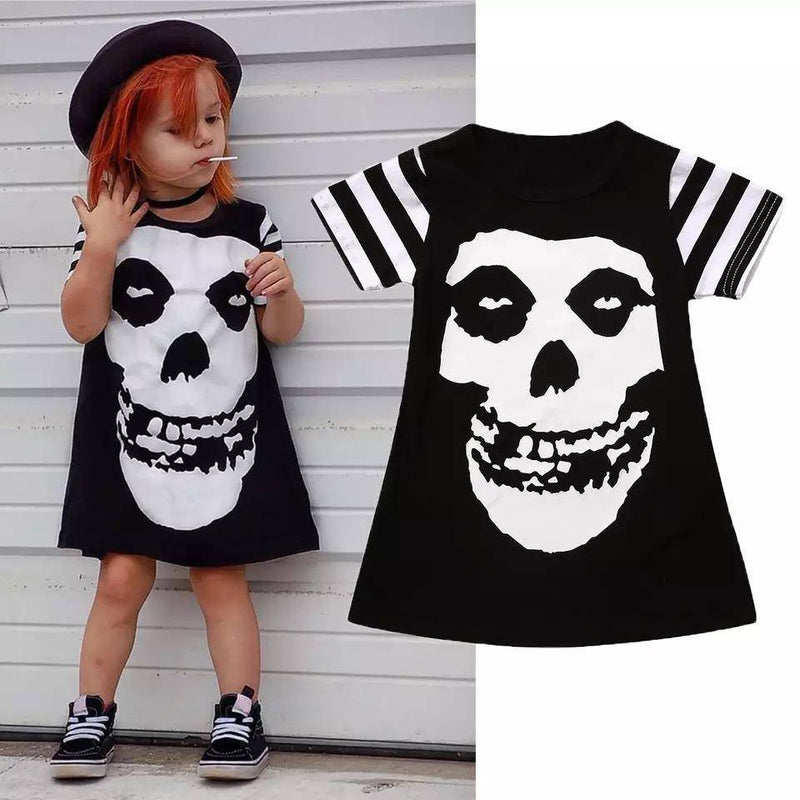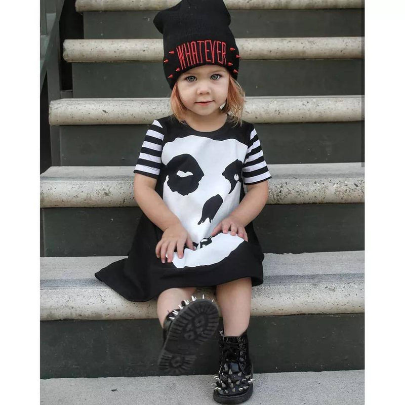 Key Features: Adorable: Made with love, this dress is 100% absolutely adorable. Premium Quality: Crafted from a soft and breathable Cotton Blend fabric, ensuring utmost comfort for your little one. Unmatched Comfort: Designed to provide a soft and comfortable feel, allowing your girl to move freely and enjoy her day to the fullest. Perfect for All Occasions: Whether it`s a summer gathering or a special costume party, this dress is perfect for any occasion. Easy to Wear: The short sleeve design makes it convenient to put on or take off, saving you time and effort. Flawless Fit: Rest assured, this dress is true to size. Be sure to know your girl`s normal size for a perfect fit. Stylish Print: Featuring a captivating skull pattern, this dress adds a touch of edginess to your girl`s look. Package Content: Each purchase includes 1 dress, ensuring great value for money.