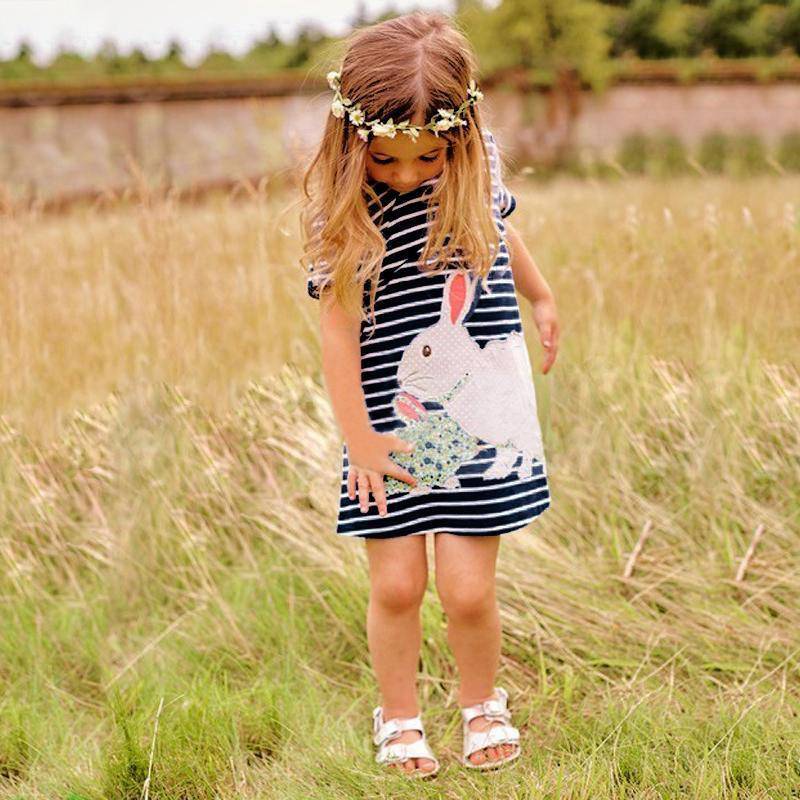 Add a touch of charm to your little one's wardrobe with this adorable Short Sleeve Striped Rabbit Sunflower Embroidered Dress. Crafted from high-quality cotton fabric, this dress ensures utmost comfort and breathability for your child.