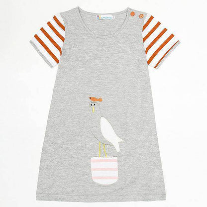 Short Sleeve Striped Rabbit Sunflower Embroidered Dress Dark Grey